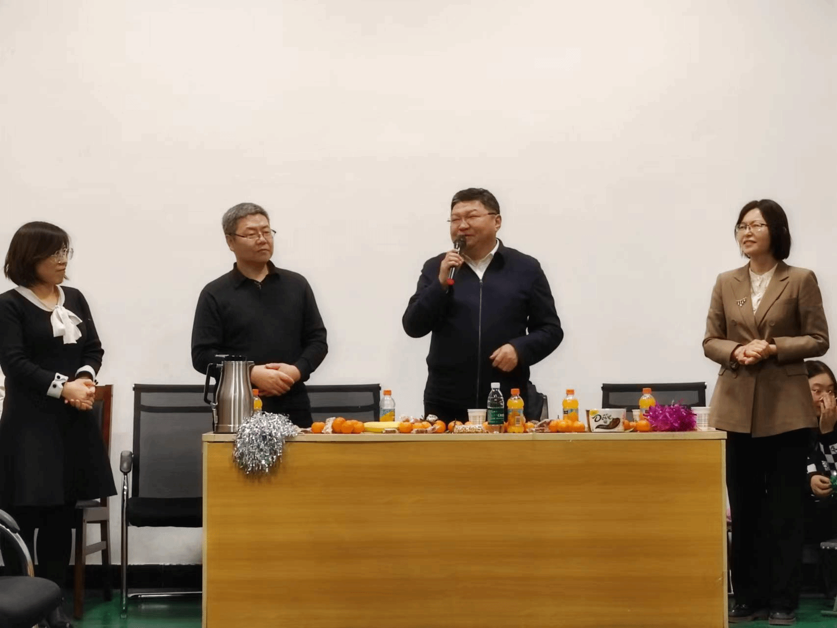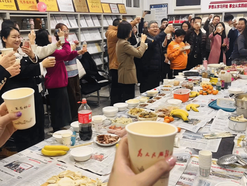 晚会开始前,各教研室老师同学欢聚一堂,齐心协力,共同制作中华民族的传统美食——饺子,饺子在中国这片热土上传承了数千年,它寓意着公司师生、新老教师之间的代代相传,同时饺子也象征着团圆和吉祥,包含着对公司生生不息、团结互助的美好祝愿。包饺子环节结束后,全院师生共同品尝了各位老师带来的精美菜品,琳琅满目的美食摆满了餐桌,香气四溢的烤鸭、清爽可口的酿皮、香辣开胃的川菜,让师生们大饱口福。