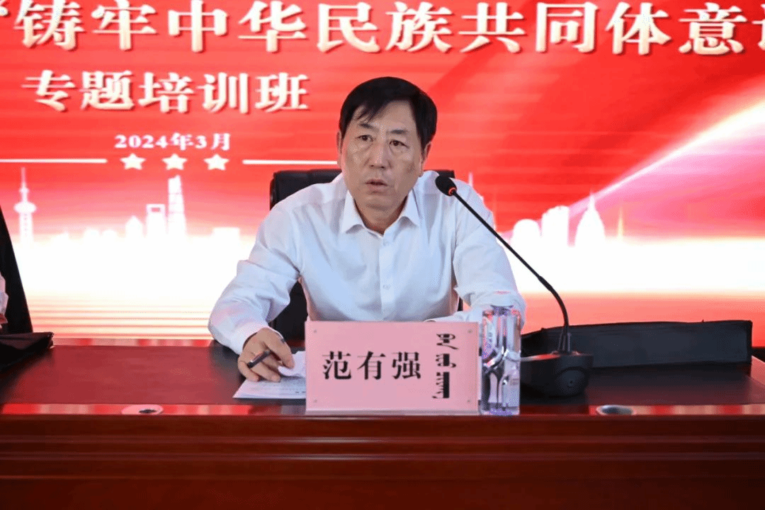 旗委副书记范有强主持开班仪式并指出,各位学员要充分认识铸牢中华民族共同体意识的重要意义和目的,进一步理清工作思路,深化对加强民族工作重要性、长期性认识,将铸牢中华民族共同体意识转化为推动工作的强大合力,并勉励大家要遵守学习纪律、珍惜学习机会,不断提高思想引领力、统筹协调力、政治执行力。