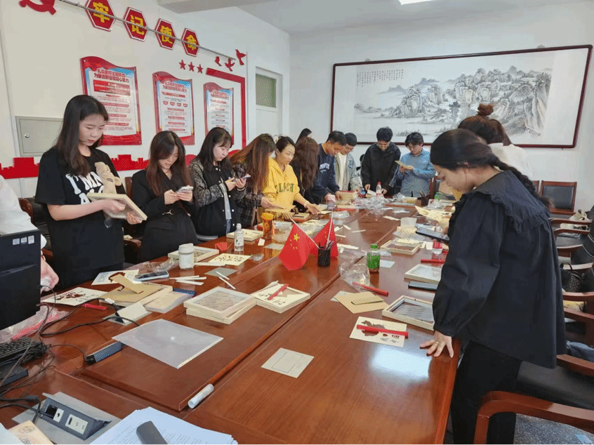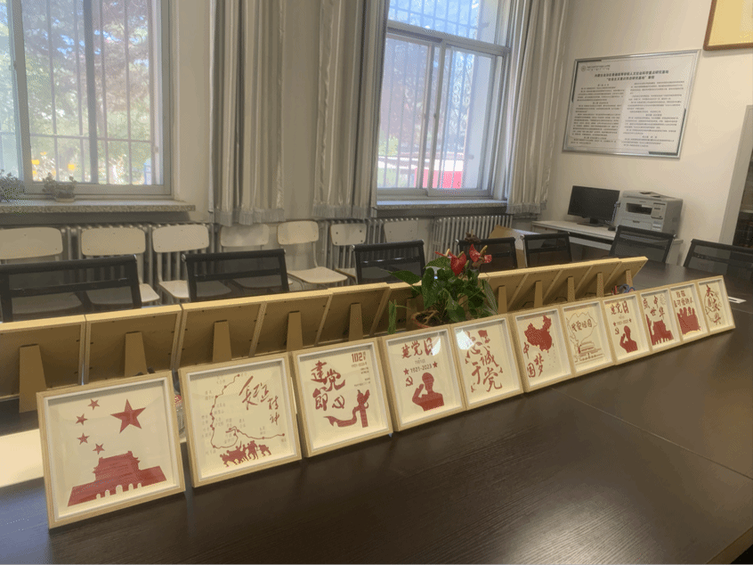 在活动过程中,支部成员进行了红色主题竹编画创作,大家分工合作,共同创造出了优秀的作品。制作完成后,各位同志纷纷分享了本次活动的感悟并将作品放置于一楼资料室展示一周。