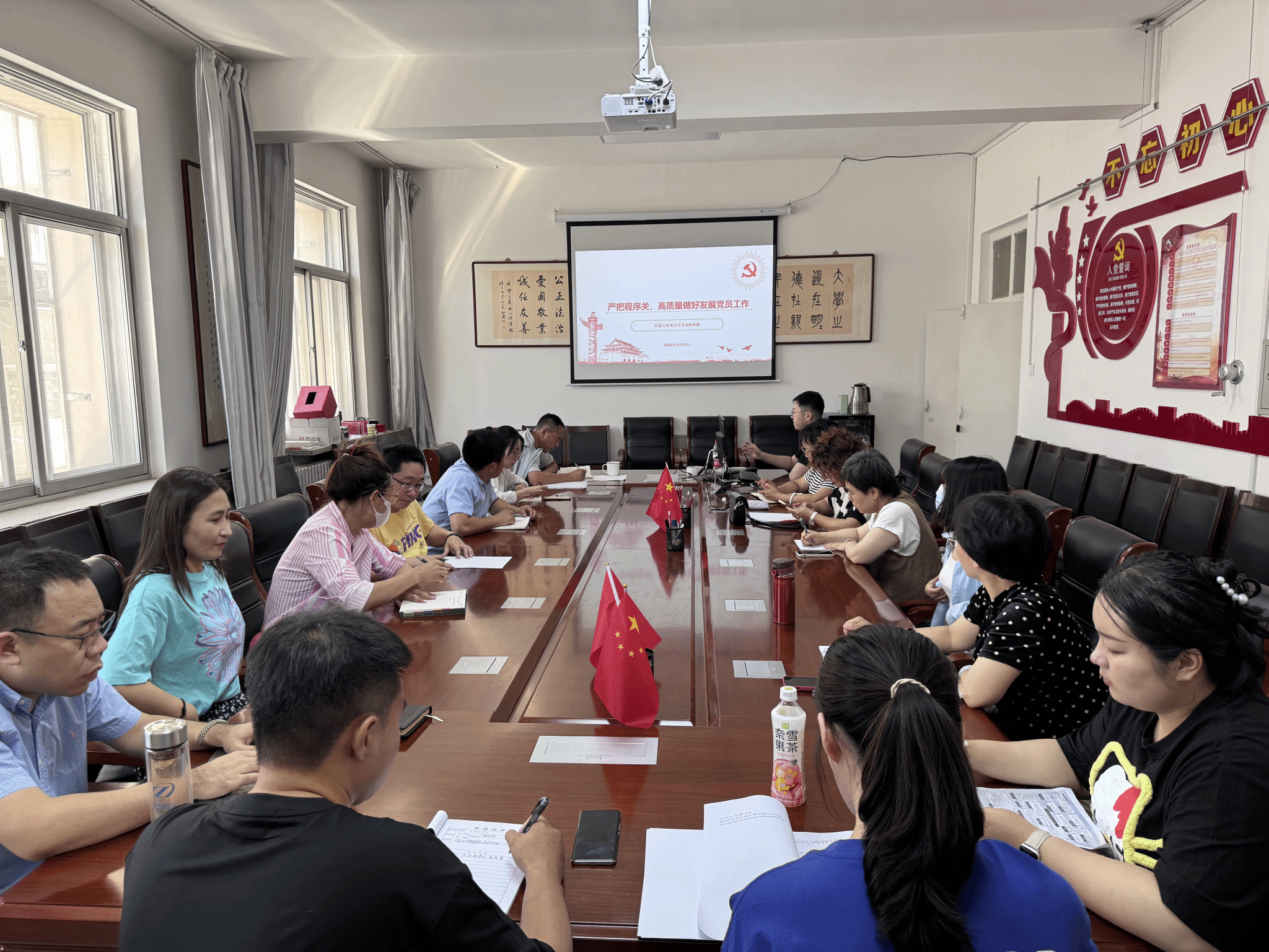 2024年6月27日星期四下午,公司党总支召开发展党员工作业务培训班,邀请学了公司党委组织部李子冲老师作主讲,李老师以 “严把程序关,高质量做好发展党员工作” 主题做了交流汇报。出席会议的有公司各支部书记、支委会成员以及部分党员,会议由公司组织委员包那日苏老师主持。