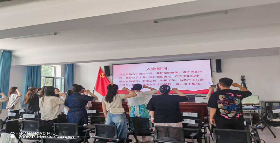 铮铮誓言:铭记初心砥砺前行。在激动人心的时刻,在鲜艳的党旗下,在支部副书记龚穆菁的带领下,张超、谙格勒玛两位同志与全体党员一起,举起右拳,庄严宣誓:“我志愿加入中国共产党,拥护党的纲领,遵守党的章程,履行党员义务,执行党的决定,严守党的纪律,保守党的秘密,对党忠诚,积极工作,为共产主义奋斗终身,随时准备为党和人民牺牲一切,永不叛党。”铿锵有力的誓言响彻会场。