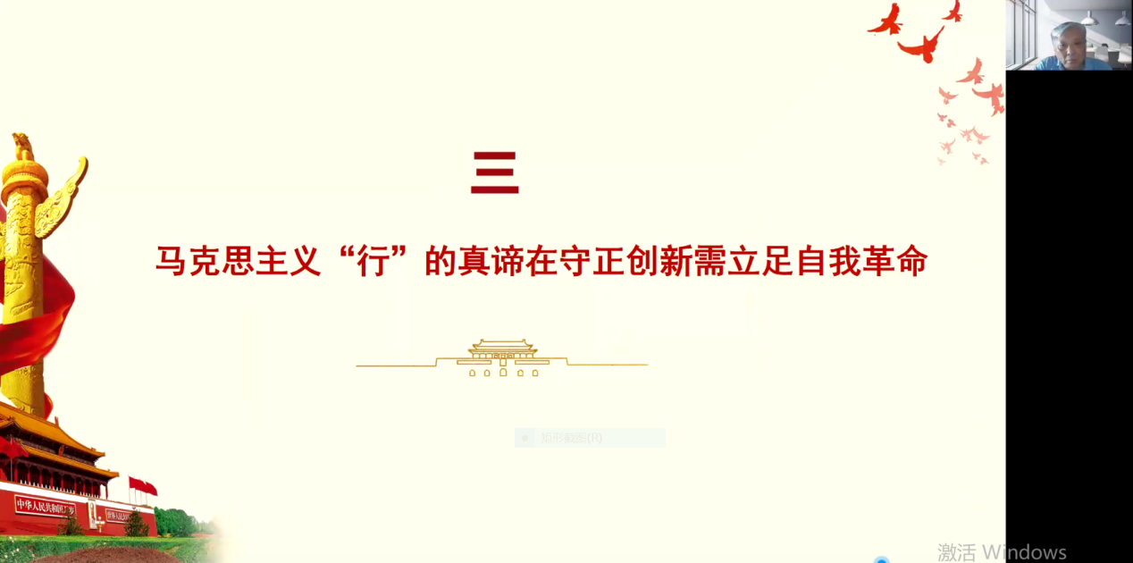 侯先生秉持历史唯物主义的深厚理论和宏伟视野,从坚定不移以马克思主义为指导思想、正确把握理论和实践的辩证关系、立足自我革命、守正创新三个方面来论述马克思主义在中国为什么“行”。侯先生认为中国共产党坚持以马克思主义为指导思想,坚持以伟大自我革命引领伟大社会革命,以不忘初心使命解答“向何处去”,以“改革永远在路上”引领时代潮流,以“发展当代中国马克思主义、21世纪马克思主义”阐释时代精神,不断推进党的建设新的伟大工程。