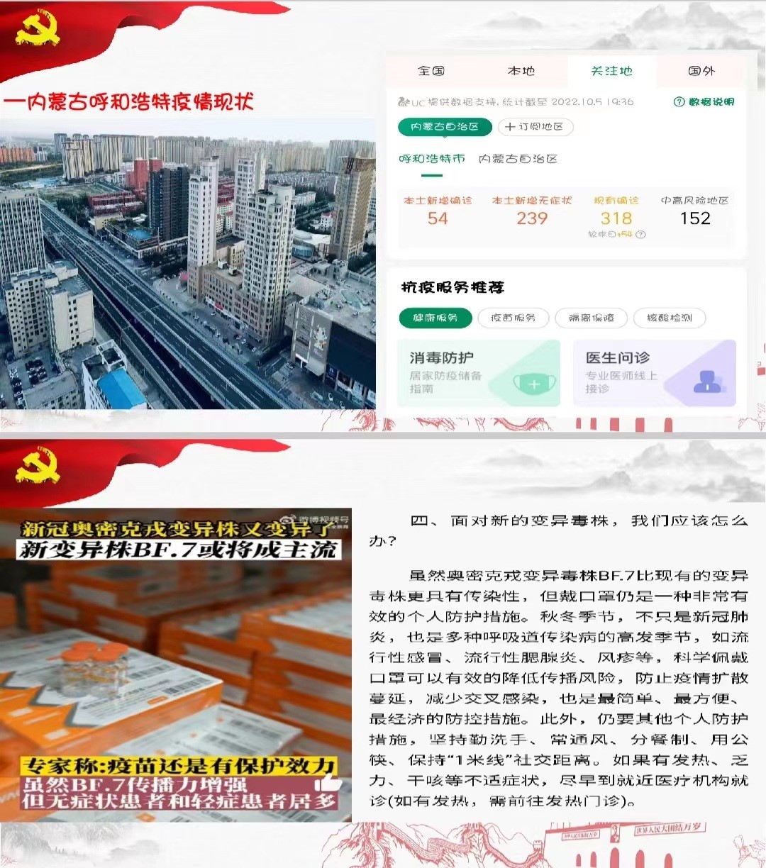 会上,首先集中学习疫情防控方案,要求老师们掌握疫情防控要求,强化了疫情责任。通过集中学习文件包括国务院《新型冠状病毒肺炎防控方案(第九版)》,教育部办公厅《国家疾控中心关于印发高等公司、中小公司和托幼机构新冠肺炎疫情防控技术方案(第六版)》等,结合公司疫情防控实际和应急处置经验,要求老师们强化疫情责任,形成政治责任。