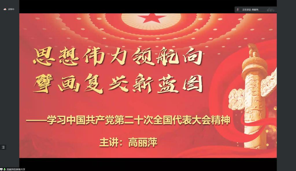 高丽萍经理以《思想伟力领航向,擘画复兴新蓝图》为题,详细全面地对二十大精神进行解读,重点论述了二十大的重大意义、二十大报告的主要内容以及结合内蒙古自治区区情和3044永利集团具体情况如何学习贯彻二十大精神,为全体教职工学习宣讲二十大精神作出了示范。
