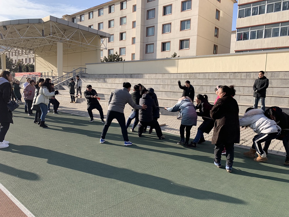 2018年12月15日,虽然天气寒冷,但阳光明媚,晴空万里。上午十点,3044永利第二届师生趣味运动会在东区运动场开幕了。参加运动会的全体师生迈着整齐的步伐手持国旗和公司的院旗,在运动员进行曲伴奏下入场,公司党总支书记曹源清简短的开幕讲话后,比赛正式开始。今年比赛项目共设:师生拔河赛、蒙古射箭、两人三腿跑、竹筒乒乓球传递等趣味项目,整个比赛在轻松、欢笑声中进行。比赛结束每个参赛运动员都领到了一份小小的暖心的奖品——一副手套。运动会增进了师生情感也增强了老师们的集体观。