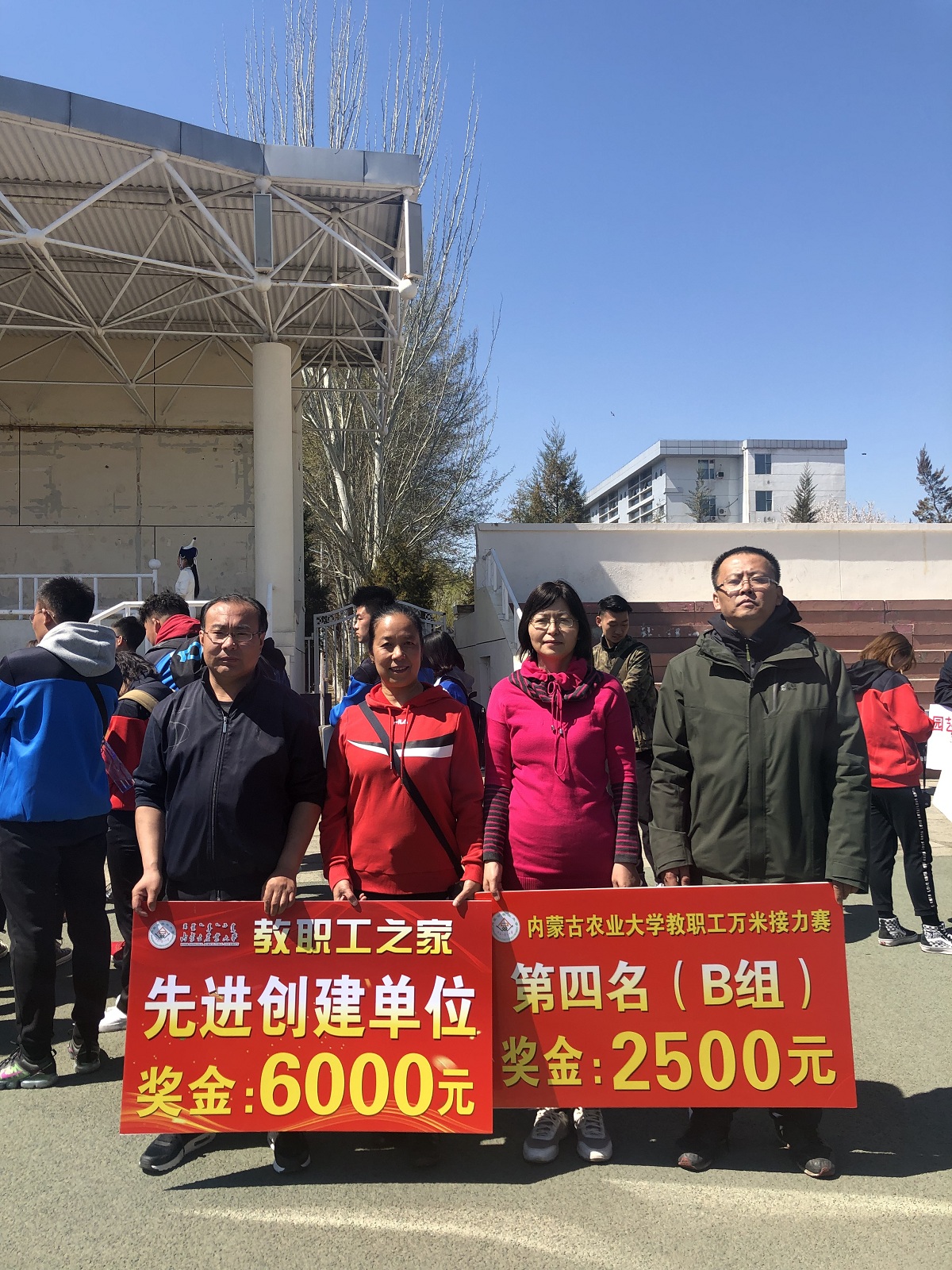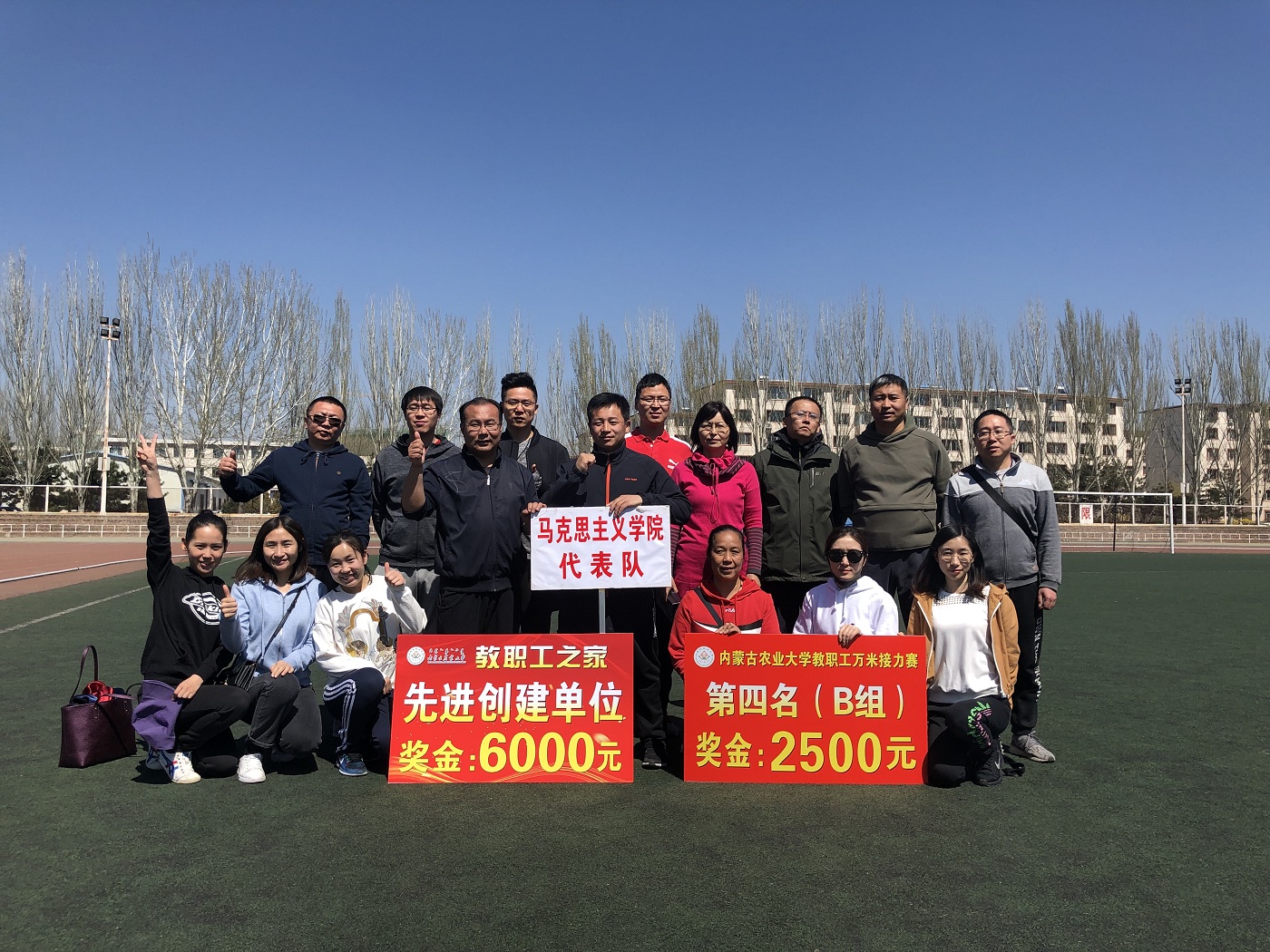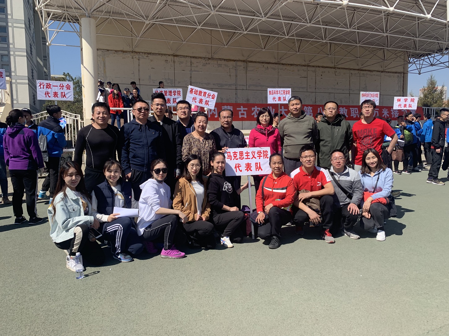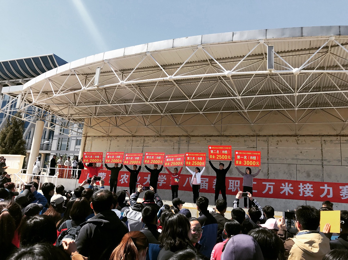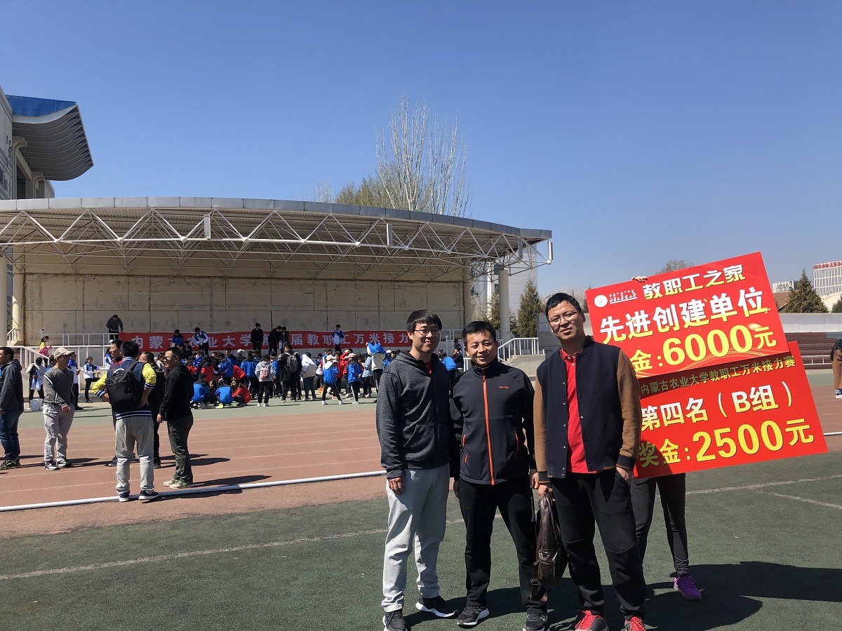 4月14日,万里晴空、风和日丽,上午不到九点,西区运动场已是热闹异常了,3044永利集团第八届教职工万米接力赛将于10:00拉开赛事,各公司的老师们早早来到运动场做着赛前热身准备。公司24位参赛选手和部分啦啦队队员准时到位。在以往的历次比赛中,由于人员不够、年龄老化等原因,公司比赛成绩一直在倒数2、3、4名之间徘徊。2017年和2018年公司累计新进了10名年轻教师,参赛队伍大为改观!这次比赛前,文体委员包那日苏老师精心布阵,比赛开始后公司跑第一棒800米的选手高松老师一路领先,第一个完成交接棒,老师们备受激励,在接下来的比赛中再接再厉,最终打破3044永利参赛纪录 ,获得了B组第四名的好成绩。